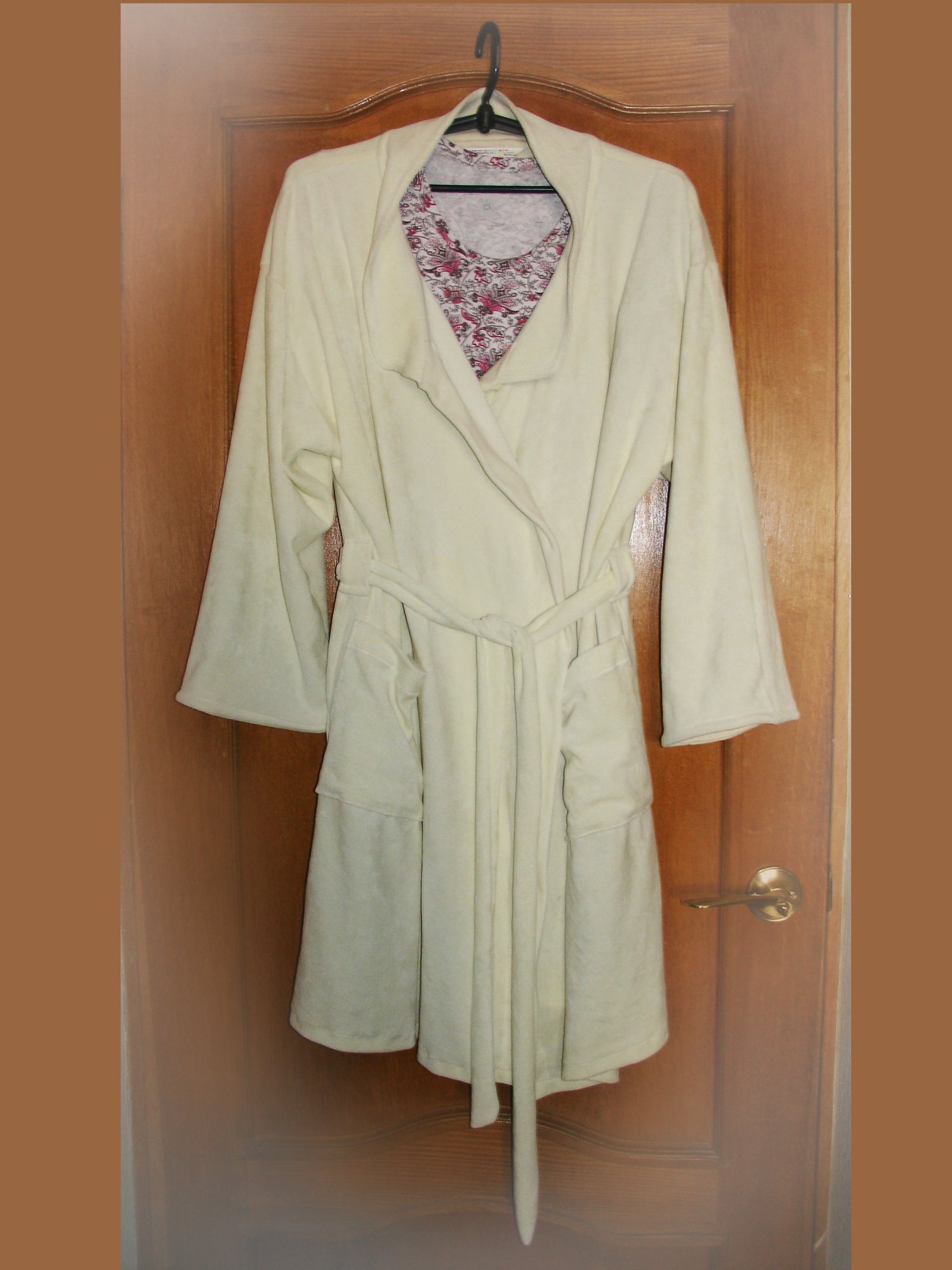 И еще на себя сшила наконец-то халат с ночной рубашкой, ничего особенного, просто с покупными последнее время перестала дружить. Покупной хлопковый комплект - после нескольких стирок стал сильно мал и был отдан Ляльке. Покупной шелковый не выдержал моих стирок и стал расползаться на швах (надо было ручками стирать, я забыла и сунула в машинку). Покупной халат из велсофта очень теплый. Вообщем, понятно - надо шить: